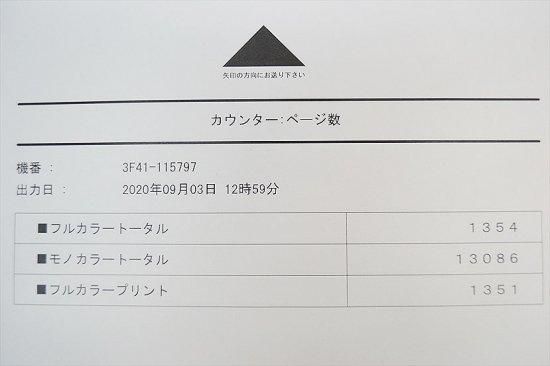 | ■カウンタ | トータル 15791枚 フルカラートータル 1354枚 モノクロトータル 13086枚 フルカラープリント 1351枚 (出荷前の動作確認で若干増えます。) |